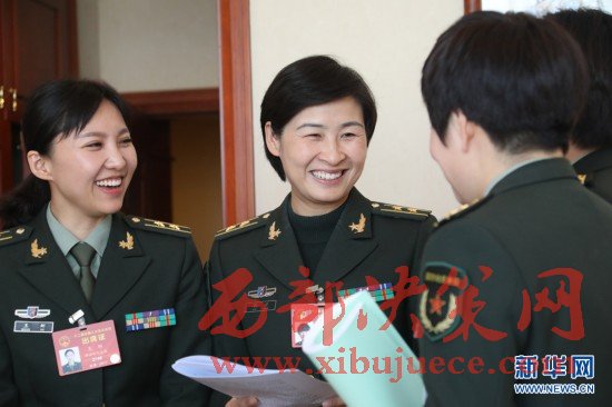 3月7日,全國人大代表劉洋(左二)等在解放軍代表團小組會議間隙交流。在兩會會場內外,女代表、女委員、女工作人員、女記者在工作中盡職盡責,展現(xiàn)著自己的風采。