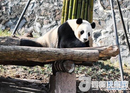 12月20日,26歲的大熊貓“英英”在中國大熊貓保護(hù)研究中心都江堰基地里一邊享受冬日暖陽一邊吃新鮮的竹子。連日來四川成都天氣晴好,中國大熊貓保護(hù)研究中心都江堰基地里的國寶大熊貓?jiān)诠ぷ魅藛T的精心照顧下安逸的享受冬日暖陽。截至目前,中國大熊貓保護(hù)研究中心擁有圈養(yǎng)大熊貓270余只,是全球最大的圈養(yǎng)大熊貓種群。 記者張超群攝