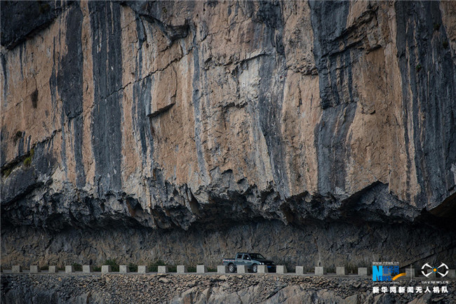 經(jīng)過一年多的時間,村民終于人工鑿出這條595米的懸崖公路,給當(dāng)?shù)貛砹讼MP氯A網(wǎng) 李相博 攝