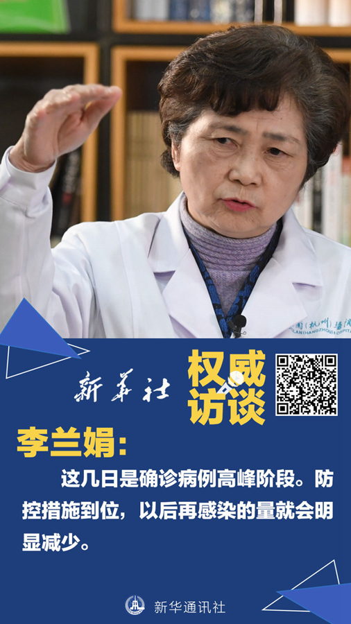 李蘭娟:之前為潛伏期的病人開始發(fā)病。早期武漢流到全國各地的病人以及留在武漢的病人都到了發(fā)病期,這是高峰來臨的一個階段,一點也不奇怪?,F(xiàn)在,發(fā)病的人我們隔離了,與他們有密切接觸的人員也調(diào)查出來、隔離起來,以后再感染的數(shù)量會明顯減少。武漢“封城”是非常英明的決策。正好趕上春節(jié)人口大流動,只有嚴(yán)格地把武漢控制起來,其他的地方才會減少發(fā)病率。