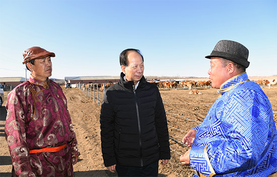 3月23日,自治區(qū)黨委書記、人大常委會主任石泰峰來到赤峰市克什克騰旗達(dá)來諾日鎮(zhèn)崗更嘎查西門塔爾牛養(yǎng)殖專業(yè)合作社,了解帶動已脫貧戶穩(wěn)定長效增收情況。內(nèi)蒙古日報社融媒體記者 袁永紅 攝