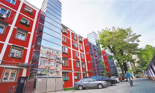加裝了電梯的北京市朝陽區(qū)和平街街道勝古北里社區(qū)13號樓。新華社記者 鞠煥宗攝