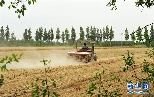 時下,河北省各地農(nóng)民抓住有利時機(jī),在搶收小麥的同時播種玉米,確保不誤農(nóng)時。