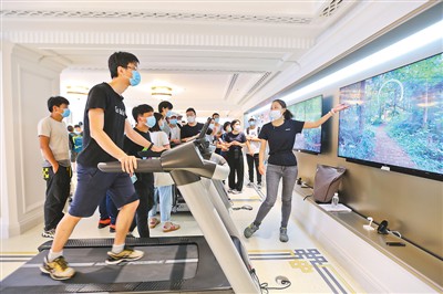 6月24日,華為上海南京東路旗艦店正式開業(yè)。該店一樓是產(chǎn)品體驗(yàn)區(qū),二樓為全場(chǎng)景體驗(yàn)區(qū),分為智能家居、移動(dòng)辦公、運(yùn)動(dòng)健康、智慧出行、影音娛樂(lè)等五大場(chǎng)景。該店還為消費(fèi)者提供全場(chǎng)景沉浸式互動(dòng)體驗(yàn)。圖為市民在該店內(nèi)體驗(yàn)智能運(yùn)動(dòng)產(chǎn)品。王 初攝(人民視覺(jué))