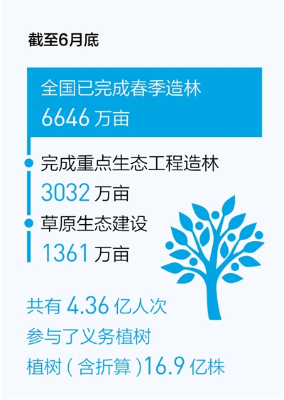 上半年完成春季造林6646萬畝