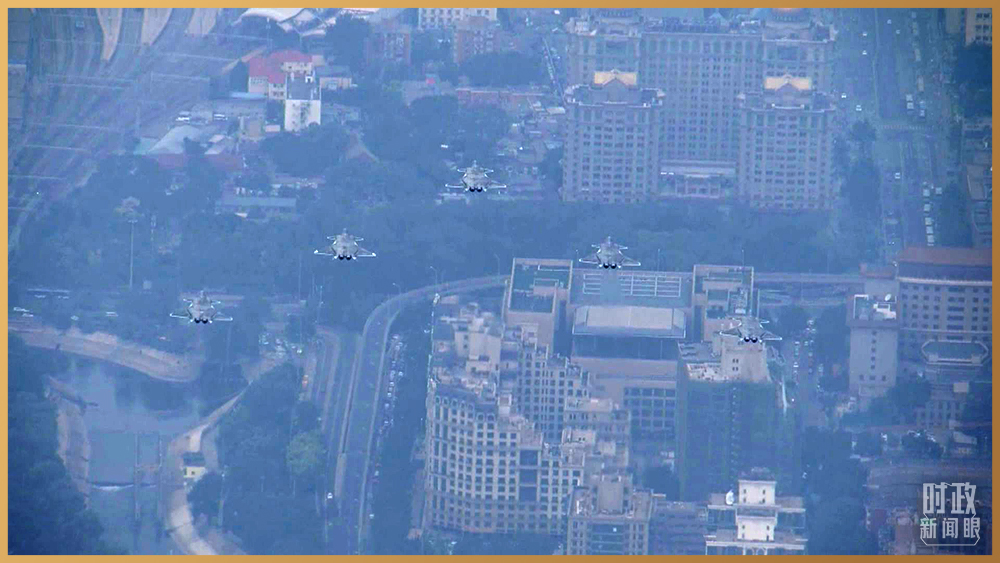 △15架殲-20飛機(jī)組成3個梯隊,飛過天安門廣場。