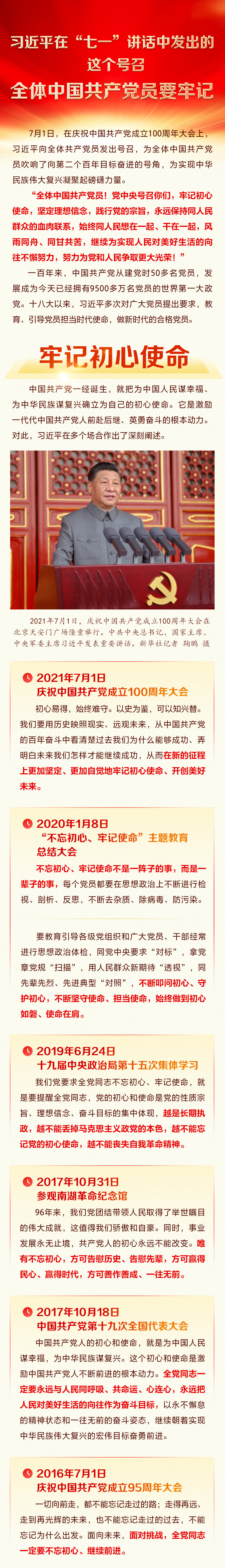 習(xí)近平在“七一”講話中發(fā)出的這個(gè)號(hào)召 全體中國(guó)共產(chǎn)黨員要牢記