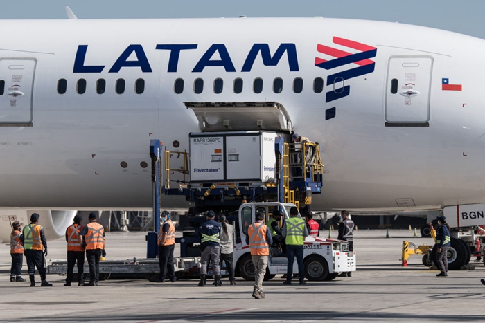 當?shù)貢r間1月28日上午,首批近200萬劑由中國科興公司生產的新冠疫苗運抵智利首都圣地亞哥。新華社發(fā)(豪爾赫·比列加斯攝)