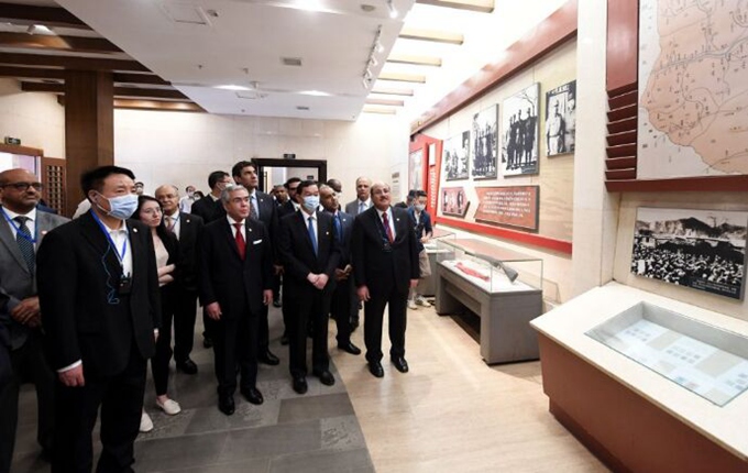 6月3日,阿拉伯國家駐華使節(jié)及阿盟駐華代表處代表等在西柏坡紀念館參觀。新華社記者 王曉 攝