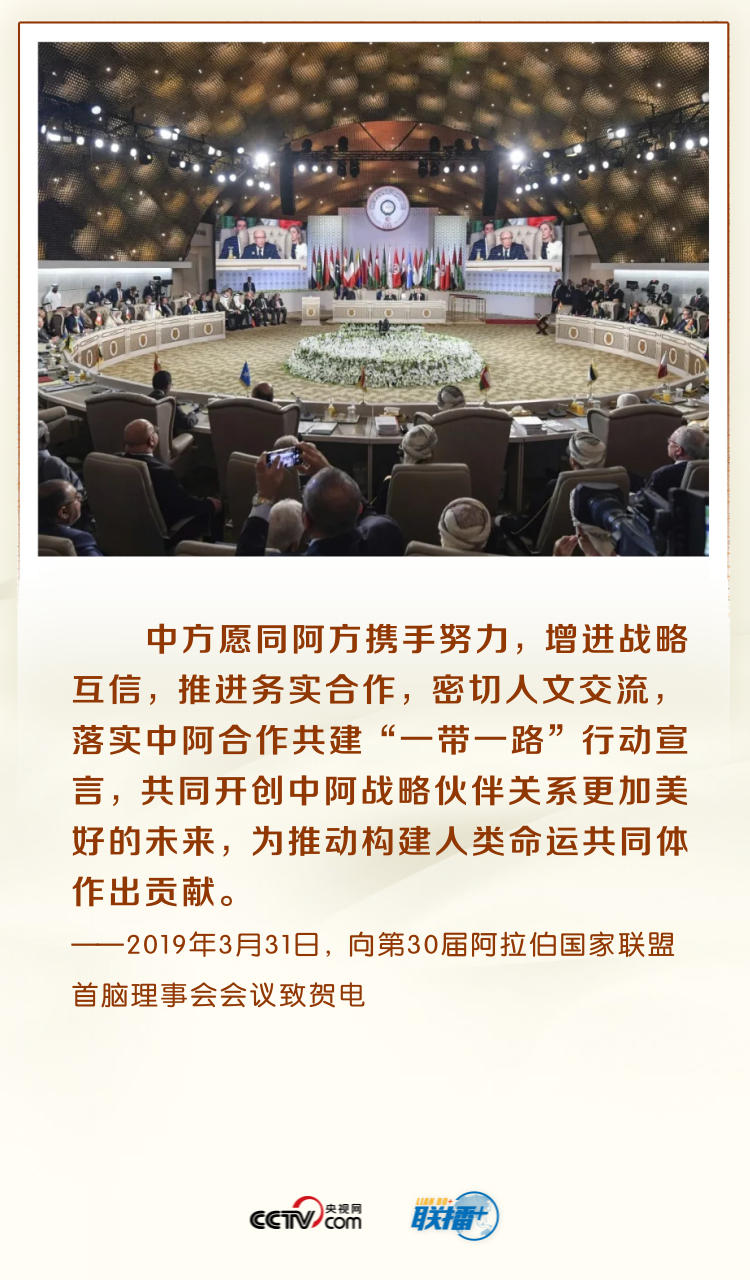 2014年6月5日,習主席首次提出打造中阿命運共同體倡議。2018年7月10日,習主席倡議從增進戰(zhàn)略互信、實現(xiàn)復興夢想、實現(xiàn)互利共贏、促進包容互鑒四方面努力打造中阿命運共同體,為中阿關(guān)系未來發(fā)展描繪新藍圖。