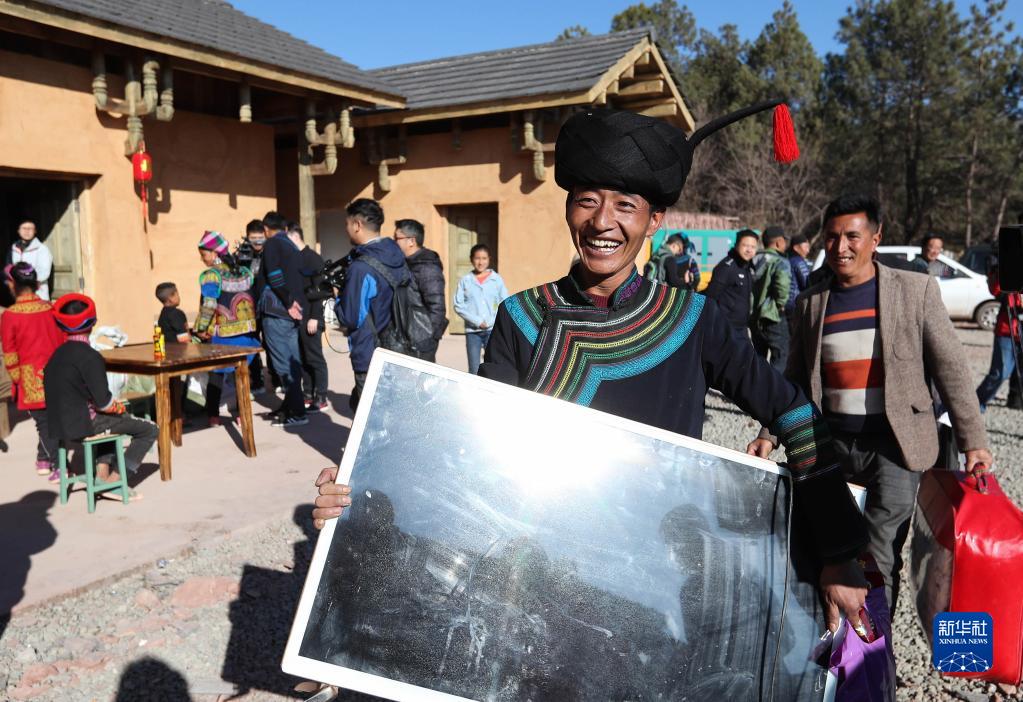 在四川省昭覺(jué)縣三河村的易地扶貧安置點(diǎn),彝族群眾馬海日聰喜搬新居(2019年2月11日攝)。新華社記者 江宏景 攝