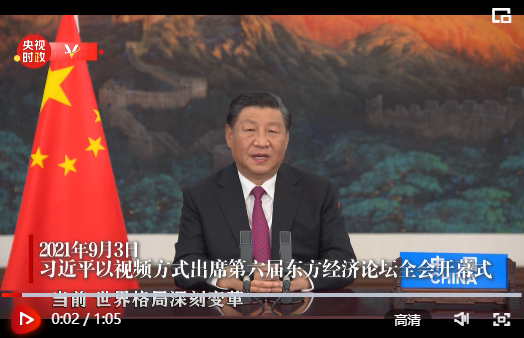 國家主席習(xí)近平9月3日應(yīng)邀以視頻方式出席第六屆東方經(jīng)濟論壇全會開幕式并致辭。
