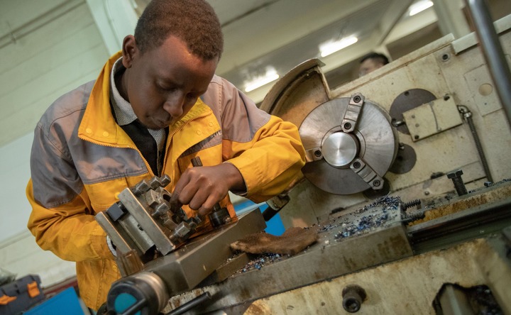 這是2018年8月17日在肯尼亞內(nèi)羅畢,一名學生維護機床。近年來,為了幫助非洲國家培養(yǎng)職業(yè)技術(shù)人才,助力非洲工業(yè)化進程,中航國際分別與肯尼亞、烏干達、贊比亞、加納、加蓬等國教育部合作開展職業(yè)教育項目。新華社記者 張宇 攝