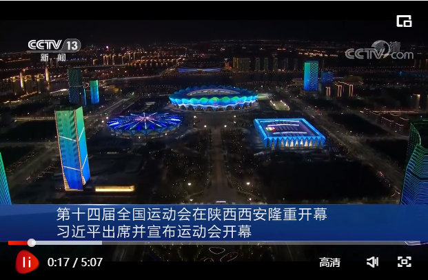 中華人民共和國(guó)第十四屆運(yùn)動(dòng)會(huì)15日晚在陜西省西安市隆重開(kāi)幕。中共中央總書(shū)記、國(guó)家主席、中央軍委主席習(xí)近平出席開(kāi)幕式并宣布運(yùn)動(dòng)會(huì)開(kāi)幕。