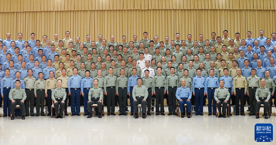 金秋時(shí)節(jié),古城西安天高氣爽,景色宜人。上午10時(shí)30分許,習(xí)近平來到基地營區(qū)。在熱烈的掌聲中,習(xí)近平親切接見駐西安部隊(duì)官兵代表,同大家合影留念。