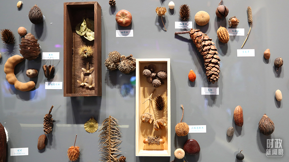 △會(huì)展中心,云南生物多樣性保護(hù)實(shí)踐與成果展展廳的種子墻。(圖/視覺中國)