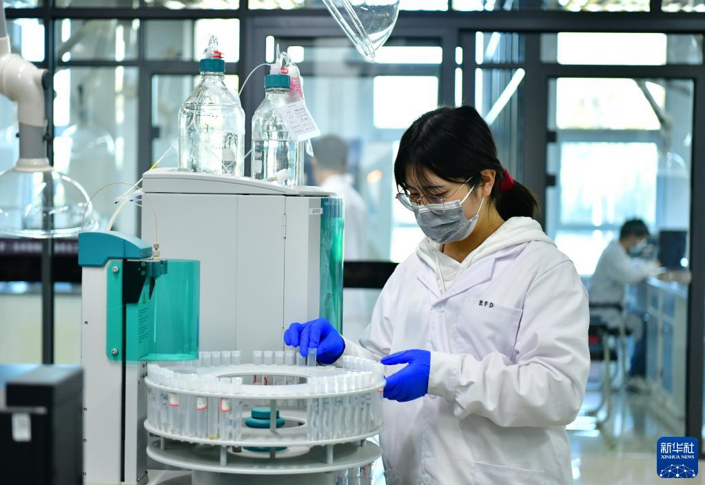 研發(fā)分析人員在南開大學(xué)·滄州渤海新區(qū)綠色化工研究院分析測(cè)試中心工作(10月12日攝)。新華社記者 楊世堯 攝
