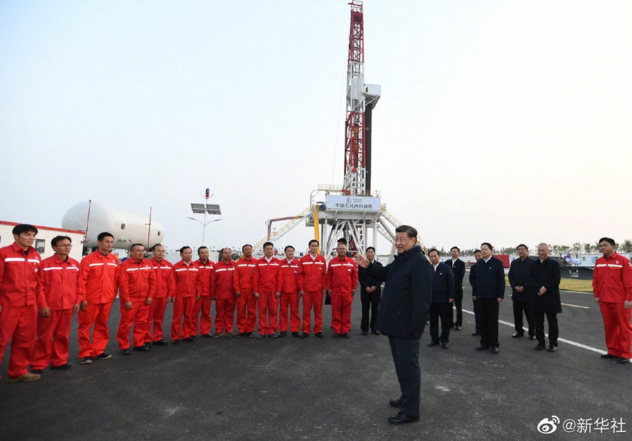21日,習近平總書記繼續(xù)在山東省東營市考察調(diào)研。他先后來到黃河三角洲農(nóng)業(yè)高新技術(shù)產(chǎn)業(yè)示范區(qū)、墾利區(qū)董集鎮(zhèn)楊廟社區(qū)、勝利油田勘探開發(fā)研究院和鉆井平臺,了解黃河三角洲鹽堿地綜合利用和現(xiàn)代農(nóng)業(yè)發(fā)展、黃河灘區(qū)和原蓄滯洪區(qū)居民遷建、勝利油田創(chuàng)新發(fā)展等情況。(文字記者:張曉松、朱基釵;攝影記者:李學仁、謝環(huán)馳、王曄)