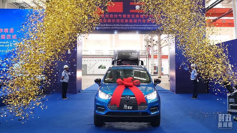 △2021年7月,中國(guó)老撾南南合作項(xiàng)目——萬(wàn)象賽色塔低碳示范區(qū)新能源車發(fā)運(yùn)儀式在長(zhǎng)沙舉行。28輛新能源汽車將助力當(dāng)?shù)匕l(fā)展綠色交通。(圖/視覺中國(guó))