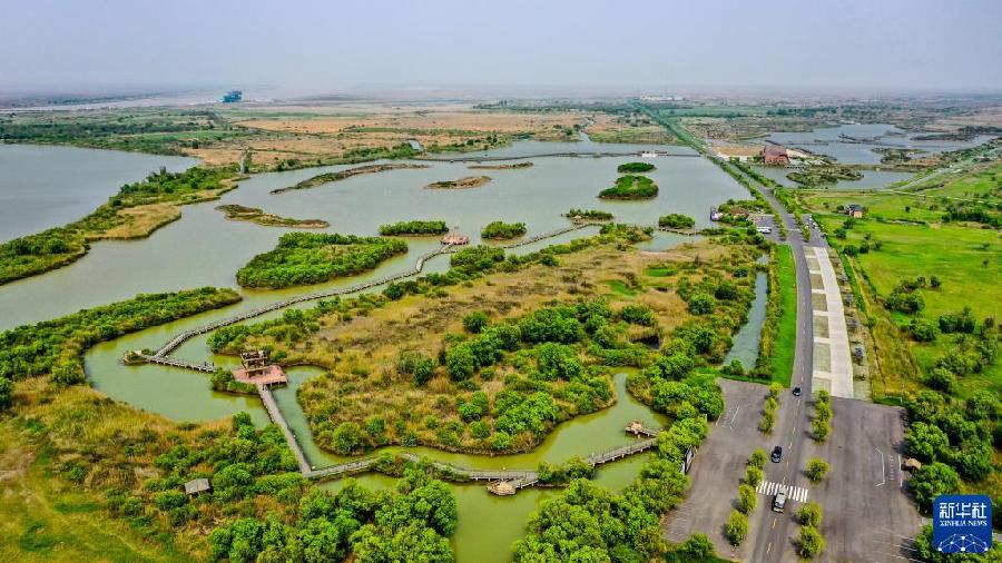 這是5月13日拍攝的山東黃河三角洲國(guó)家級(jí)自然保護(hù)區(qū)景色(無(wú)人機(jī)照片)。新華社記者 郭緒雷 攝