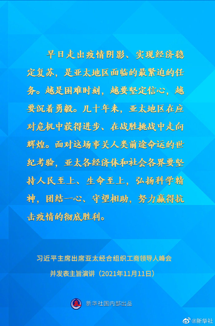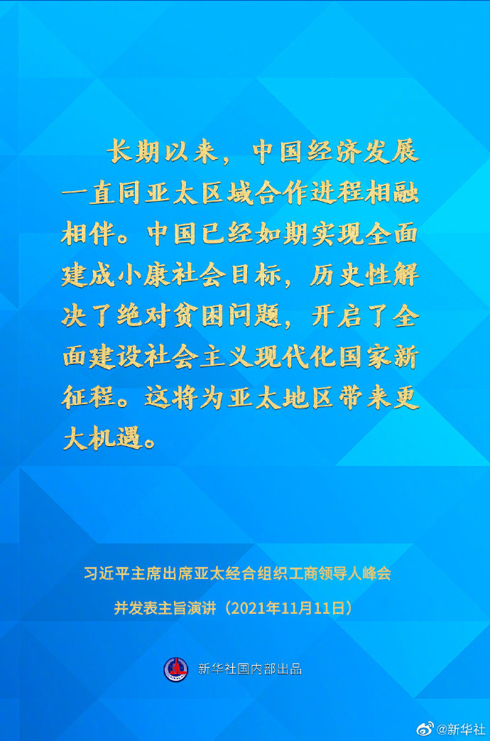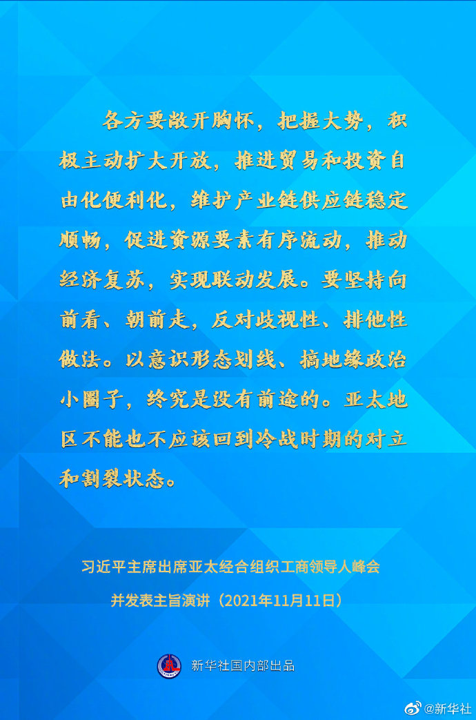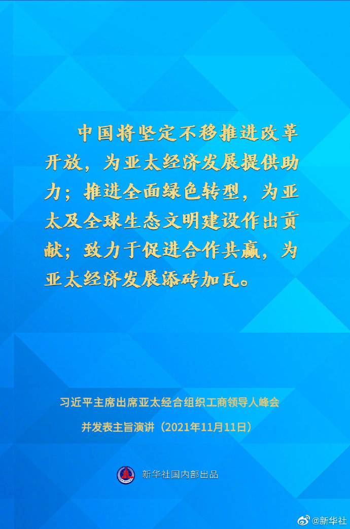 11月11日,國家主席習近平應邀在北京以視頻方式向亞太經(jīng)合組織工商領導人峰會發(fā)表主旨演講。一起來看要點↓