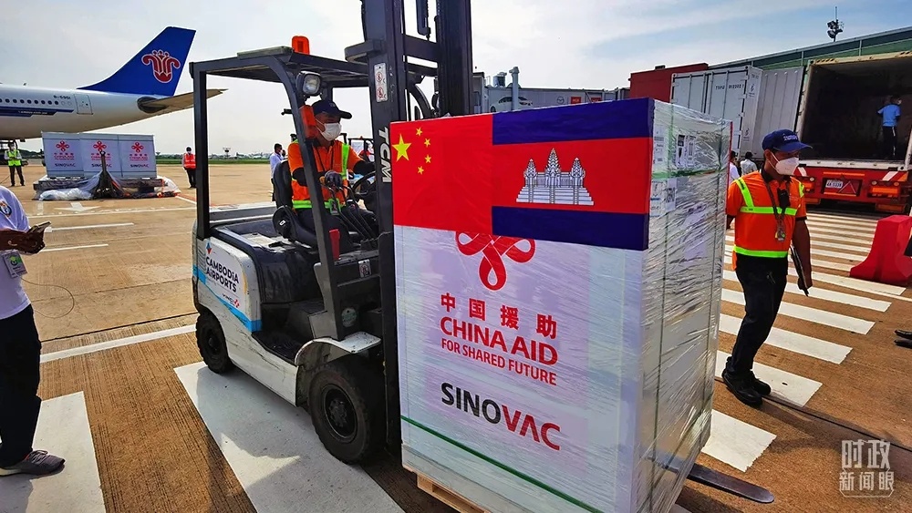 △2021年11月17日,柬埔寨金邊,中國(guó)援柬第七批新冠疫苗運(yùn)抵。(圖/視覺(jué)中國(guó))