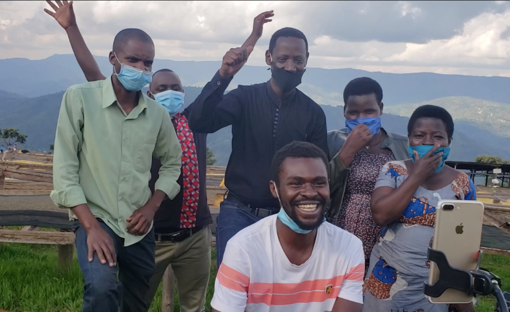 2020年5月14日,盧旺達咖啡農觀看直播錄像,看到3000斤咖啡瞬間賣光后歡呼。