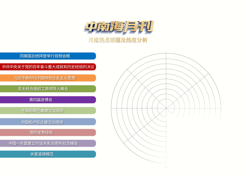 央視網(wǎng)“智聞”系統(tǒng)抓取分析了11月全網(wǎng)時政新聞熱點,十九屆六中全會備受網(wǎng)友關(guān)注,與之關(guān)聯(lián)的“中共中央關(guān)于黨的百年奮斗重大成就和歷史經(jīng)驗的決議”“習(xí)近平新時代中國特色社會主義思想”“黨的寶貴經(jīng)驗”等重大話題熱度居高不下。
