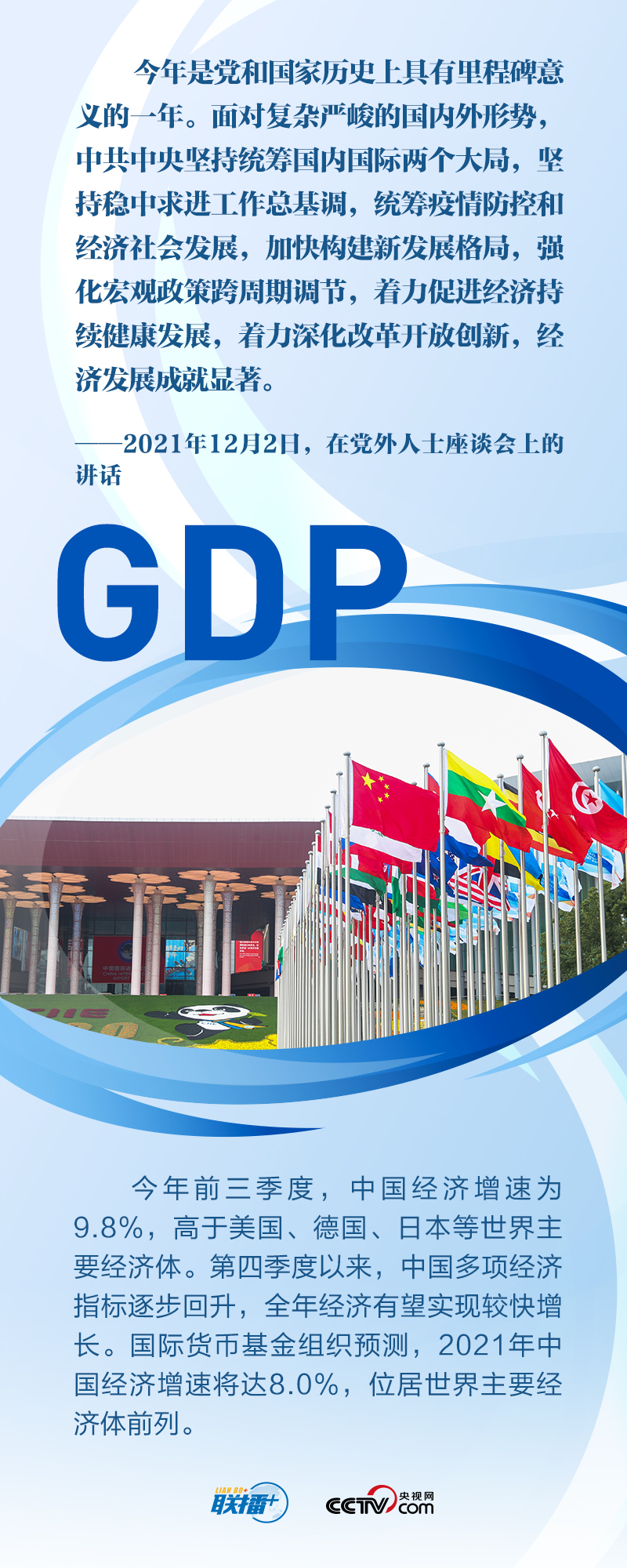 “今年是黨和國家歷史上具有里程碑意義的一年。面對(duì)復(fù)雜嚴(yán)峻的國內(nèi)外形勢(shì),中共中央堅(jiān)持統(tǒng)籌國內(nèi)國際兩個(gè)大局,堅(jiān)持穩(wěn)中求進(jìn)工作總基調(diào),統(tǒng)籌疫情防控和經(jīng)濟(jì)社會(huì)發(fā)展,加快構(gòu)建新發(fā)展格局,強(qiáng)化宏觀政策跨周期調(diào)節(jié),著力促進(jìn)經(jīng)濟(jì)持續(xù)健康發(fā)展,著力深化改革開放創(chuàng)新,經(jīng)濟(jì)發(fā)展成就顯著。”在黨外人士座談會(huì)上,習(xí)近平總書記充分肯定2021年中國經(jīng)濟(jì)發(fā)展取得的成績。