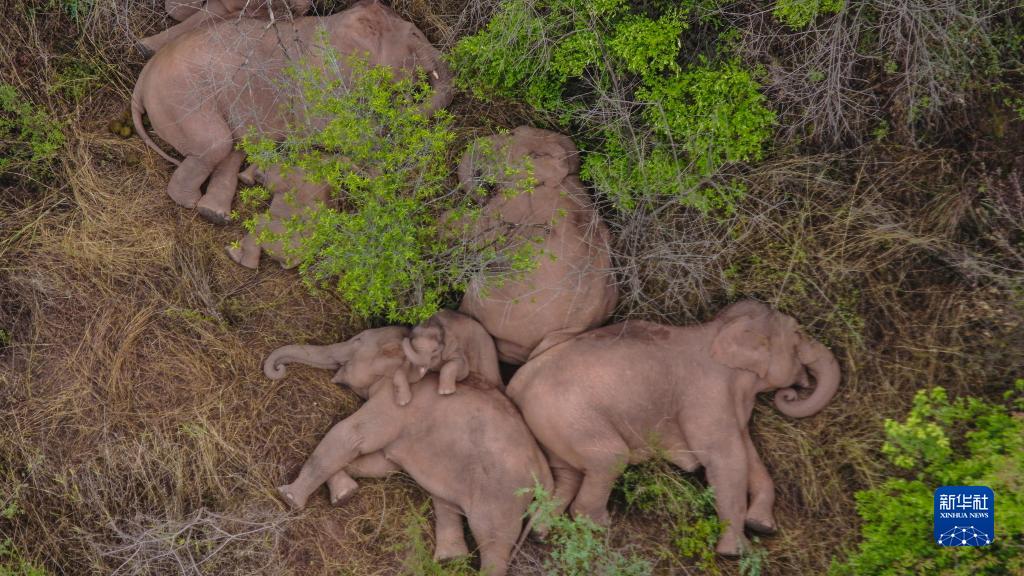 這是2021年6月7日在云南省昆明市晉寧區(qū)夕陽彝族鄉(xiāng)拍攝的野象(無人機(jī)照片)。新華社發(fā)