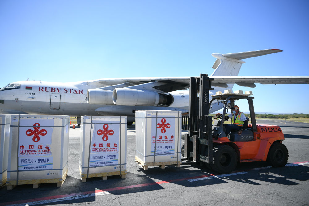 ↑2021年12月24日,在尼加拉瓜馬那瓜國際機場,工作人員轉(zhuǎn)運由中國國藥集團生產(chǎn)的新冠疫苗。當(dāng)日,中國政府提供的第二批新冠疫苗運抵馬那瓜,助力當(dāng)?shù)亻_展疫苗接種計劃。
