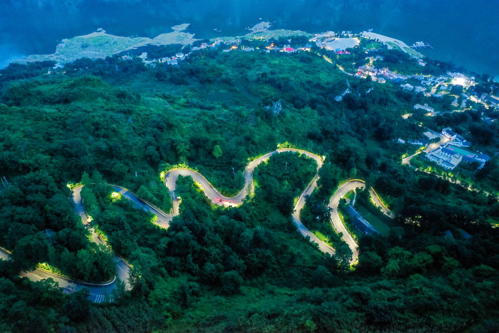 ↑2021年7月23日拍攝的貴州省黔西市新仁苗族鄉(xiāng)化屋村通村公路(無人機照片)。2017年,化屋村實現(xiàn)脫貧摘帽。