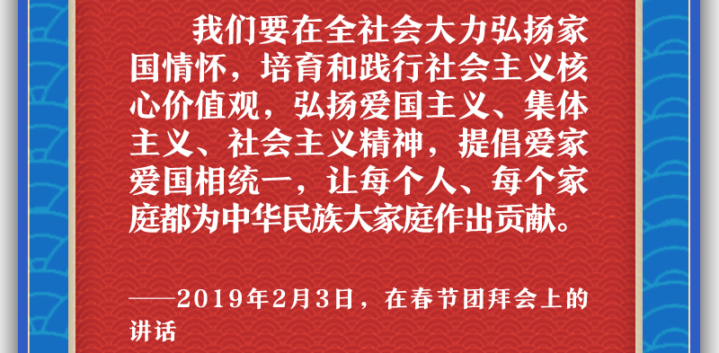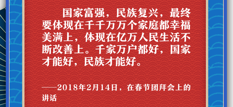 他提醒大家,把實現(xiàn)家庭夢融入民族夢之中,心往一處想,勁往一處使。