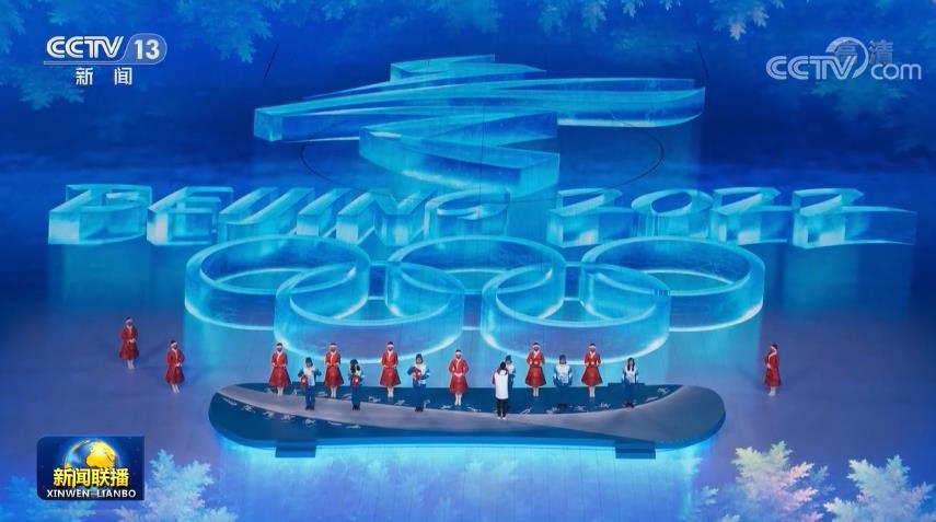 20時整,閉幕式開場表演《點亮》開始了。孩子們手提雪花花燈,以元宵節(jié)鬧花燈的傳統(tǒng),點亮了場地上的“冬”字會徽。