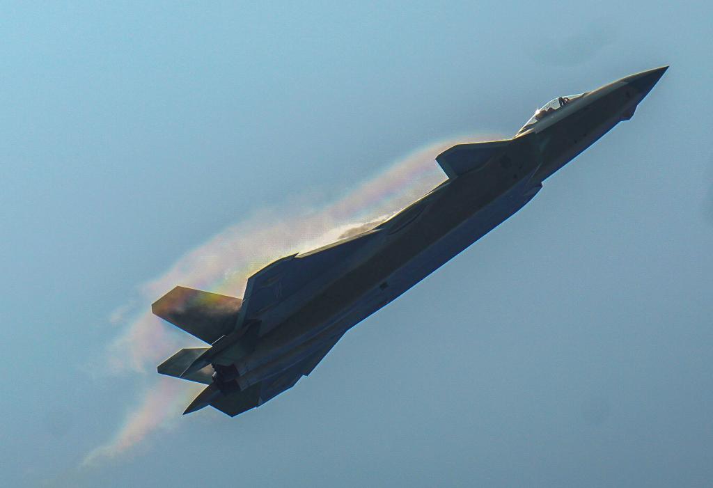 2021年9月28日,第十三屆中國國際航空航天博覽會在廣東珠海開幕,這是中國空軍殲-20戰(zhàn)機在開幕式上進行飛行表演。新華社記者 劉大偉 攝