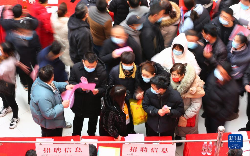 2022年2月19日,求職人員在山東省滕州市“春風(fēng)送崗”春季人才招聘會上尋找就業(yè)崗位。新華社發(fā)(李志軍攝)