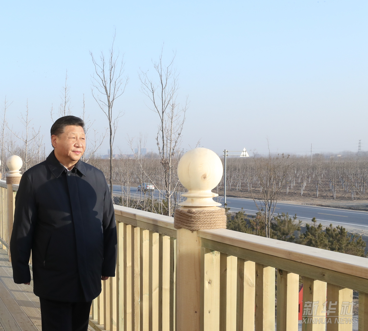 2019年1月16日至18日,習近平在京津冀考察,主持召開京津冀協(xié)同發(fā)展座談會并發(fā)表重要講話。這是1月16日下午,在雄安新區(qū)“千年秀林”大清河片林一區(qū)造林區(qū)域,習近平登上秀林驛站二層平臺遠眺林區(qū)全貌。