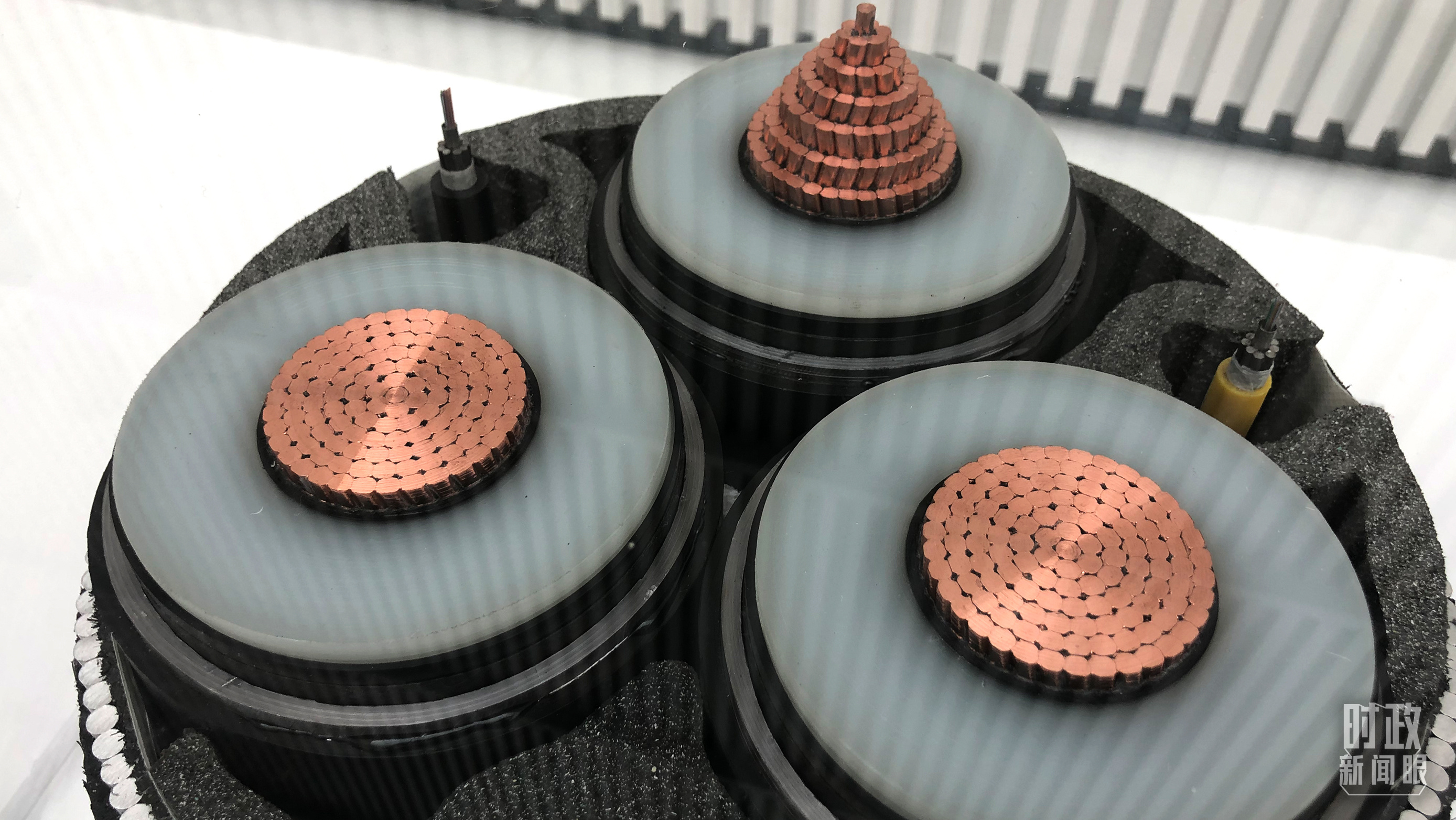 △展示館內(nèi)展出的“海底光電復合纜”,用于海洋能源互聯(lián),比如海上風電集電及輸出。(總臺央視記者許永松拍攝)