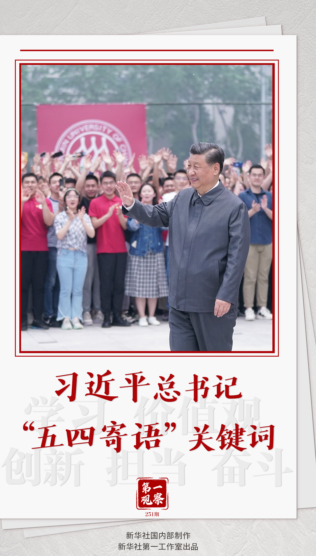 “五四運(yùn)動(dòng)以來的100年,是中國(guó)青年一代又一代接續(xù)奮斗、凱歌前行的100年,是中國(guó)青年用青春之我創(chuàng)造青春之中國(guó)、青春之民族的100年。”
