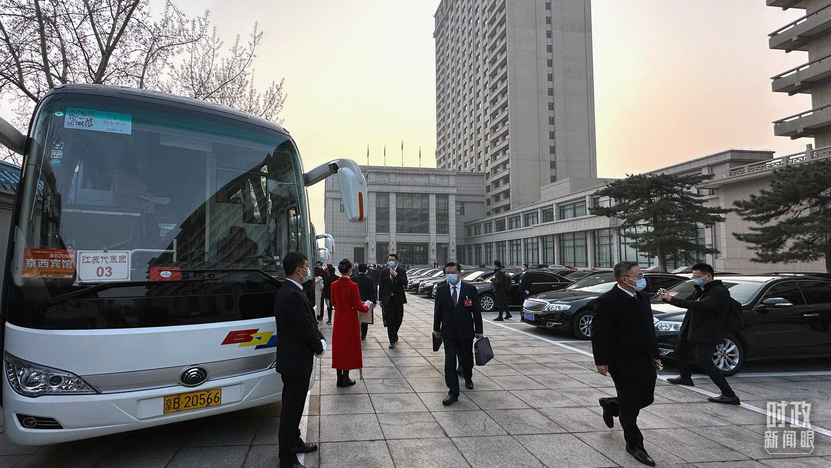 △2023年3月5日,江蘇代表團(tuán)乘車前往人民大會堂。(江蘇省廣播電視總臺記者 周明、張正拍攝)