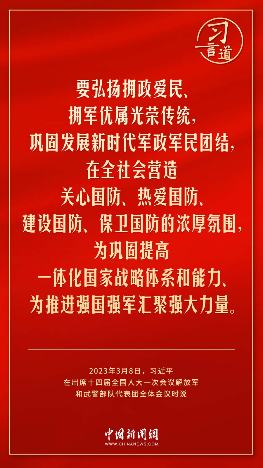 中共中央總書記、國家主席、中央軍委主席習(xí)近平8日下午在出席十四屆全國人大一次會議解放軍和武警部隊代表團(tuán)全體會議時說——
