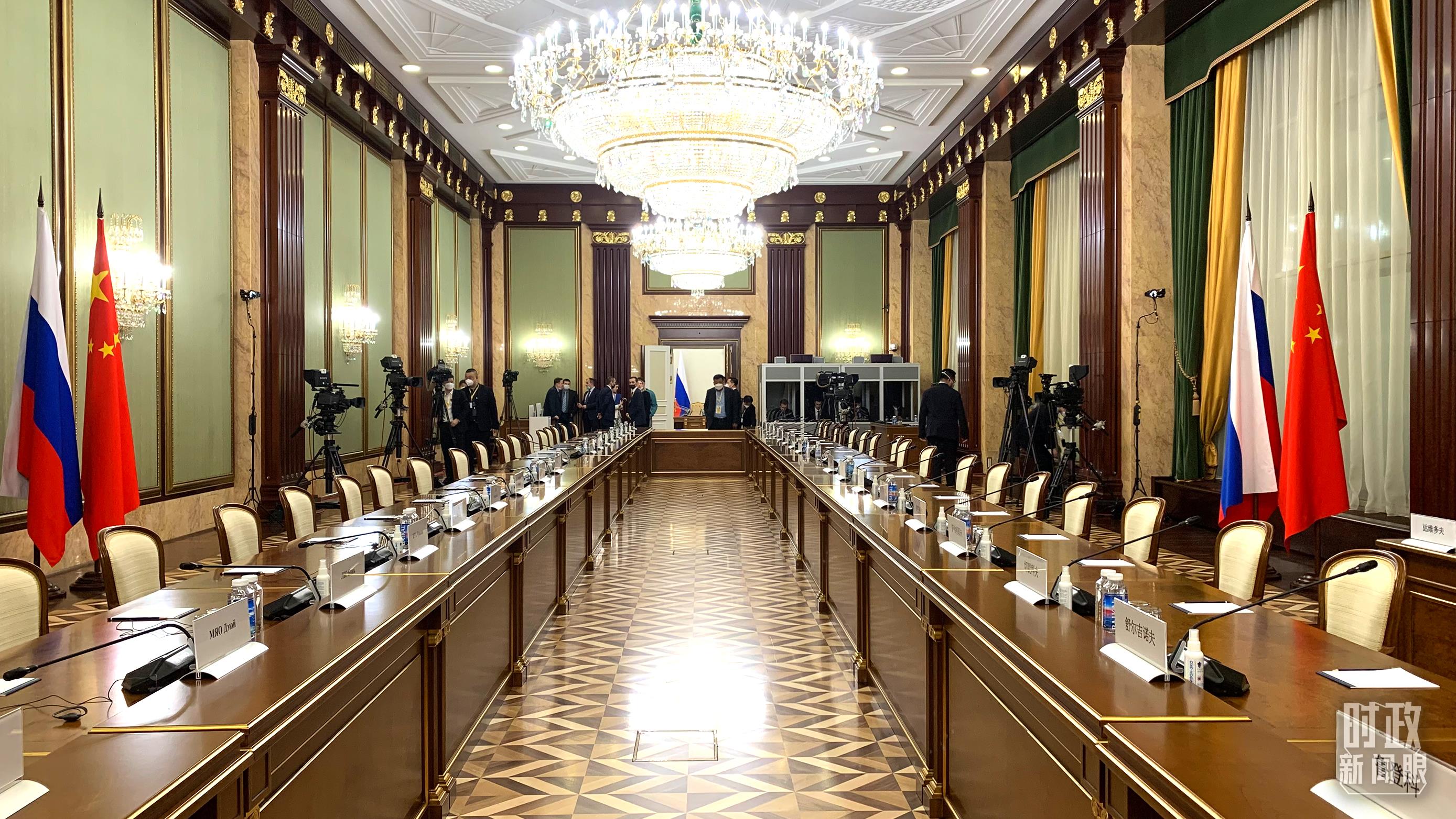 △習(xí)主席和普京總統(tǒng)舉行大范圍會談的會場。(總臺央廣記者潘毅拍攝)