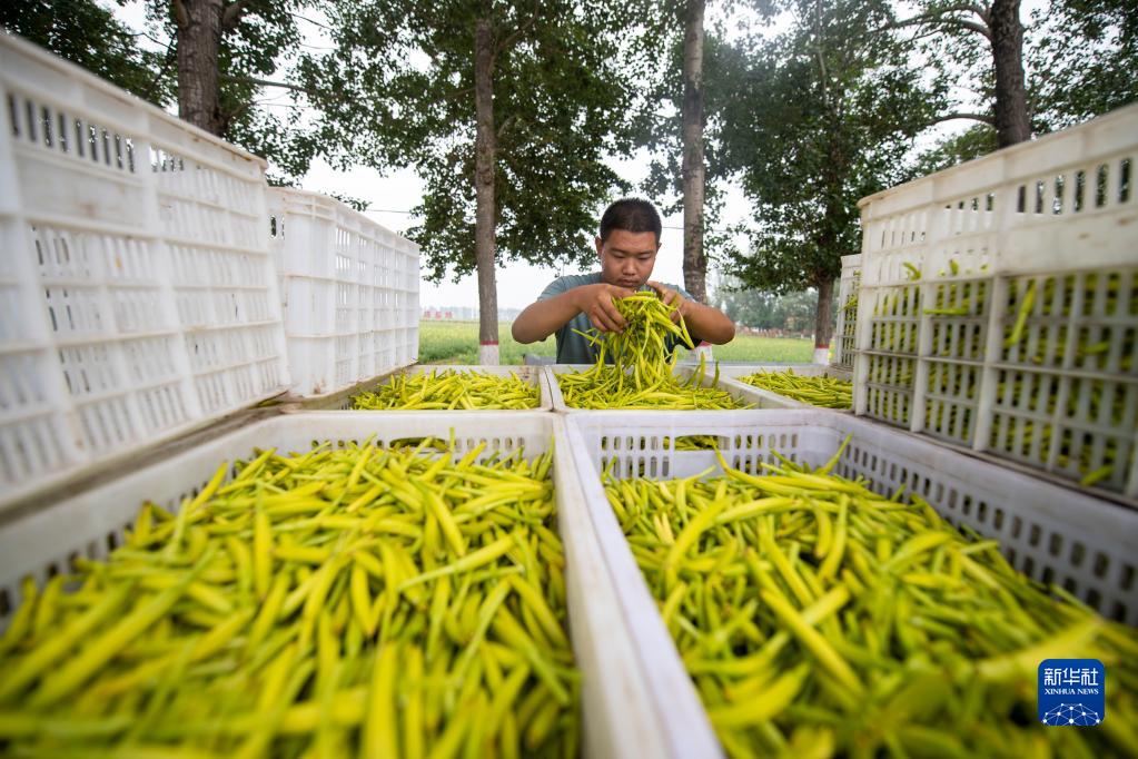 村民在云州區(qū)唐家堡村查看黃花質(zhì)量(2022年7月27日攝)。新華社記者 楊晨光 攝