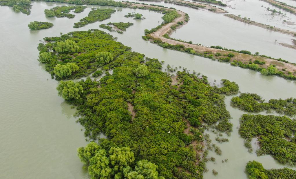 這是廣東湛江紅樹林國家級(jí)自然保護(hù)區(qū)嶺頭島保護(hù)小區(qū)(2019年11月12日無人機(jī)拍攝)。新華社記者 鄧華 攝