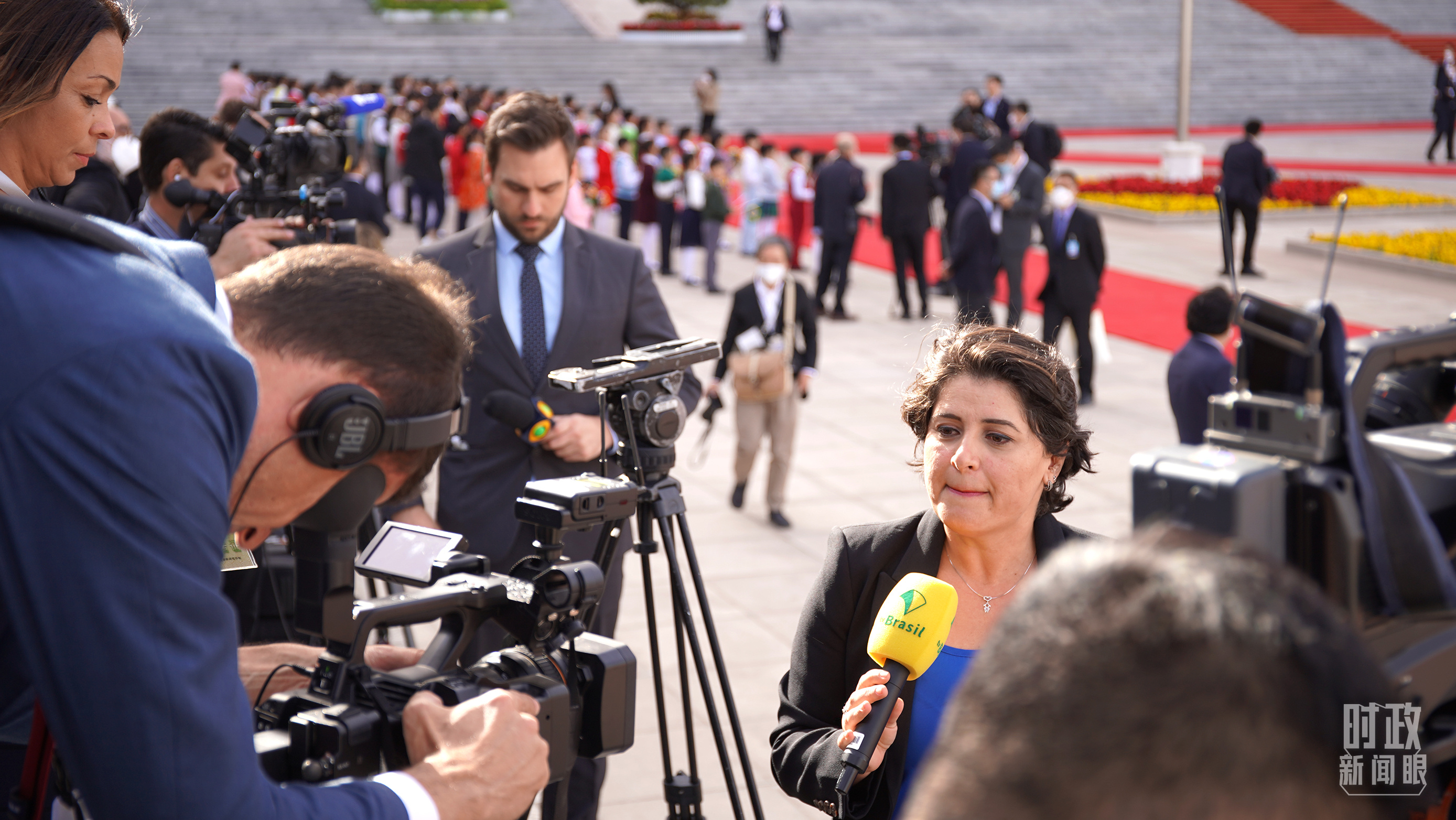 △現(xiàn)場(chǎng)報(bào)道歡迎儀式的媒體記者。(總臺(tái)央廣記者潘毅拍攝)