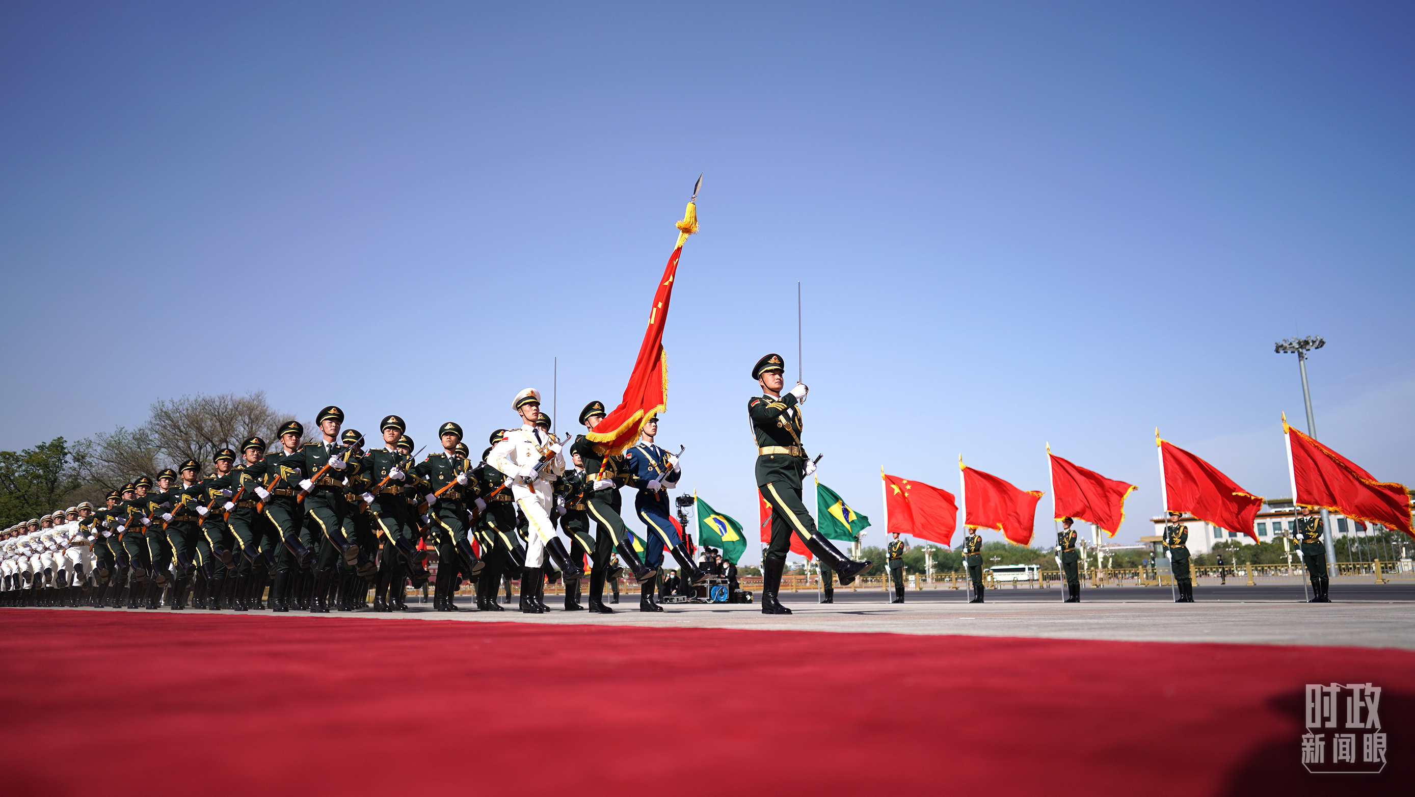 當(dāng)天,習(xí)主席在人民大會(huì)堂東門(mén)外廣場(chǎng)為盧拉總統(tǒng)舉行了歡迎儀式。儀式上有兩個(gè)值得關(guān)注的細(xì)節(jié):一個(gè)是除了巴西國(guó)歌之外,軍樂(lè)團(tuán)特意演奏了一首叫作《新時(shí)代》的巴西特色音樂(lè),二是現(xiàn)場(chǎng)歡迎隊(duì)伍中再次出現(xiàn)了少年兒童的身影,這也是新冠疫情發(fā)生以來(lái),孩子們首次回歸室外歡迎儀式。
