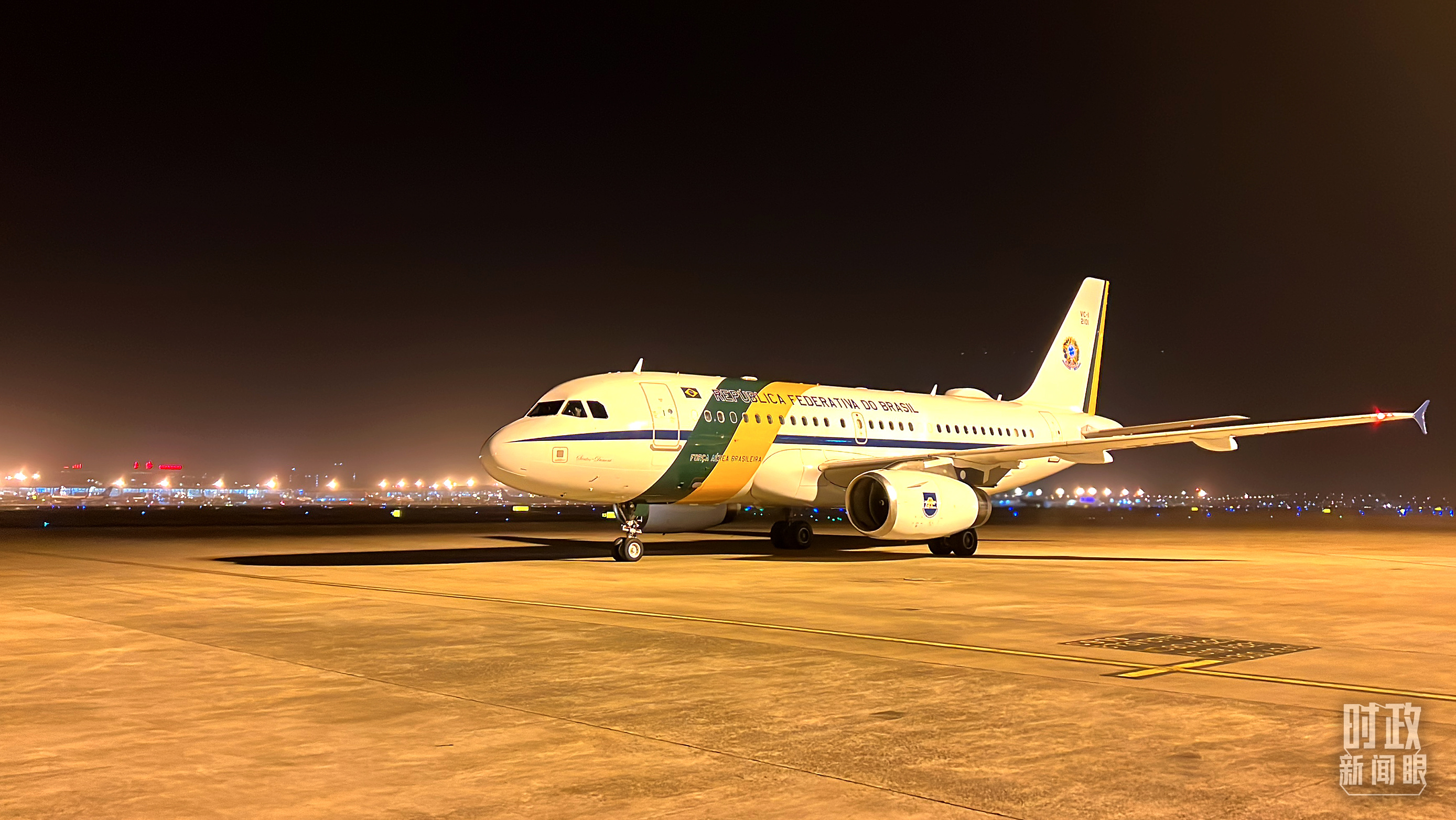 △盧拉總統(tǒng)乘坐的飛機(jī)抵達(dá)上海。(總臺(tái)央視記者楊新禹拍攝)