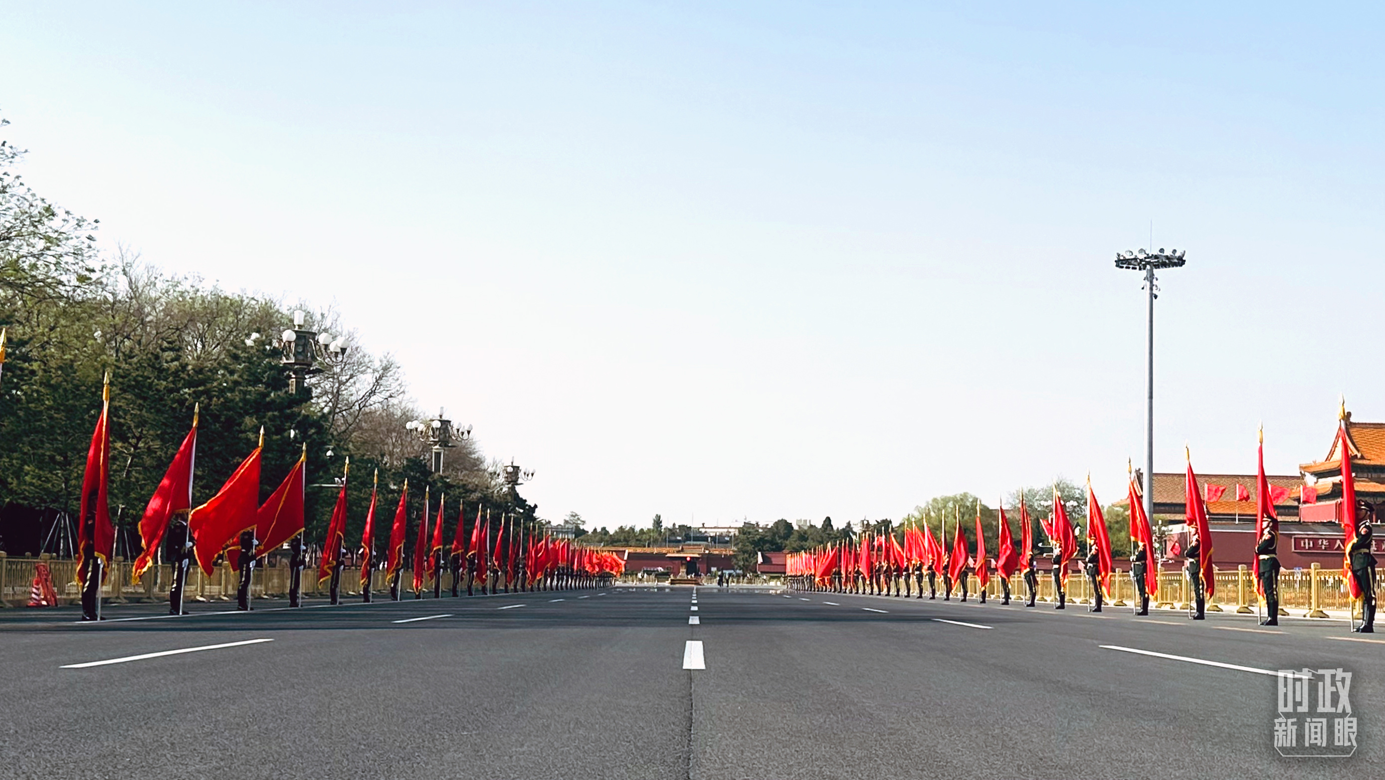 △長(zhǎng)安街兩側(cè)懸掛起中巴兩國(guó)國(guó)旗。(總臺(tái)央視記者陸泓宇拍攝)