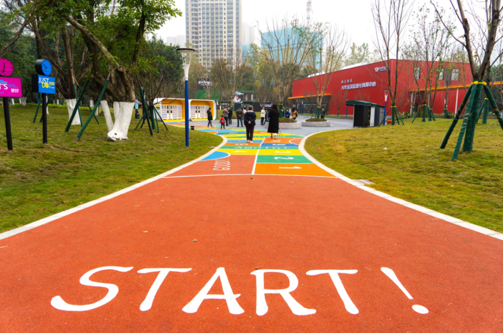 △重慶兩江新區(qū)生活垃圾分類主題公園分類知識(shí)通關(guān)步道。該形式在寓教于樂中推廣垃圾分類知識(shí)。