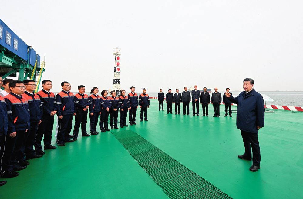 5 月 11 日至 12 日,中共中央總書記、國家主席、中央軍委主席習近平在河北考察,并主持召開深入推進京津冀協(xié)同發(fā)展座談會。這是 11 日下午,習近平在滄州市黃驊港煤炭港區(qū)碼頭考察時,同碼頭工作人員、船務(wù)人員親切交流 李學仁攝 / 本刊